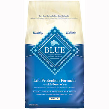 Blue Buffalo Life Protection Formula Adult Lamb & Brown Rice Recipe Dry Dog Food is specially formulated for adult dogs. It contains easily digestible protein sources, which provide essential amino acids. It also includes whole ground brown rice is rich in important B vitamins, minerals, and fiber. In addition, every bag of Blue Buffalo contains small morsels called LifeSource Bits that benefit dogs by maintaining a healthy oxidative balance and a healthy immune system throughout a dog's stages of life. LifeSource Bits are small pieces of kibble that contain a precise blend of vitamins, minerals, and antioxidants selected by holistic veterinarians and animal nutritionists. To ensure that dogs get the full benefit of these vital nutrients, LifeSource Bits are 'cold-formed" to help preserve their potency. Blue Buffalo is the only pet food that uses this manufacturing breakthrough.