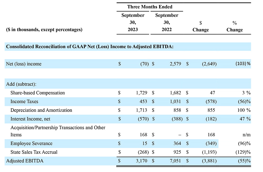 To provide investors and the market with additional information regarding our financial results, we have disclosed (see below) adjusted EBITDA, a non-GAAP financial measure that we calculate as net income excluding share-based compensation expense; depreciation and amortization; income tax provision; interest income (expense); and other non-operational expenses. We have provided reconciliations below of adjusted EBITDA to net income, the most directly comparable GAAP financial measures. We have included adjusted EBITDA, herein, because it is a key measure used by our management and Board of Directors to evaluate our operating performance, generate future operating plans, and make strategic decisions regarding the allocation of capital. In particular, the exclusion of certain expenses in calculating adjusted EBITDA facilitates operating performance comparability across reporting periods by removing the effect of non-cash expenses and other expenses. Accordingly, we believe that adjusted EBITDA provides useful information to investors and others in understanding and evaluating our operating results in the same manner as our management and Board of Directors. We believe it is useful to exclude non-cash charges, such as share-based compensation expense, depreciation and amortization from our adjusted EBITDA because the amount of such expenses in any specific period may not directly correlate to the underlying performance of our business operations. We believe it is useful to exclude income tax provision and interest income (expense), as neither are components of our core business operations. We also believe that it is useful to exclude other expenses, including the investment banking fee related to the Vetster partnership, acquisition costs related to PetCareRx, employee severance and estimated state sales tax accrual as these items are not indicative of our ongoing operations. Adjusted EBITDA has limitations as a financial measure, and these non-GAAP measures should not be considered in isolation or as a substitute for analysis of our results as reported under GAAP. Some of these limitations are: