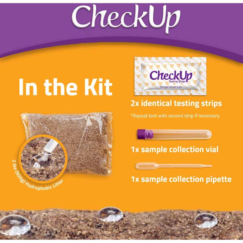 Keep away from children. Do not eat hydrophobic litter. Avoid contact with eyes. CheckUp should not replace a periodic visit to a veterinarian.If one of the parameters tests positive,contact your veterinarian for further examination and treatment.