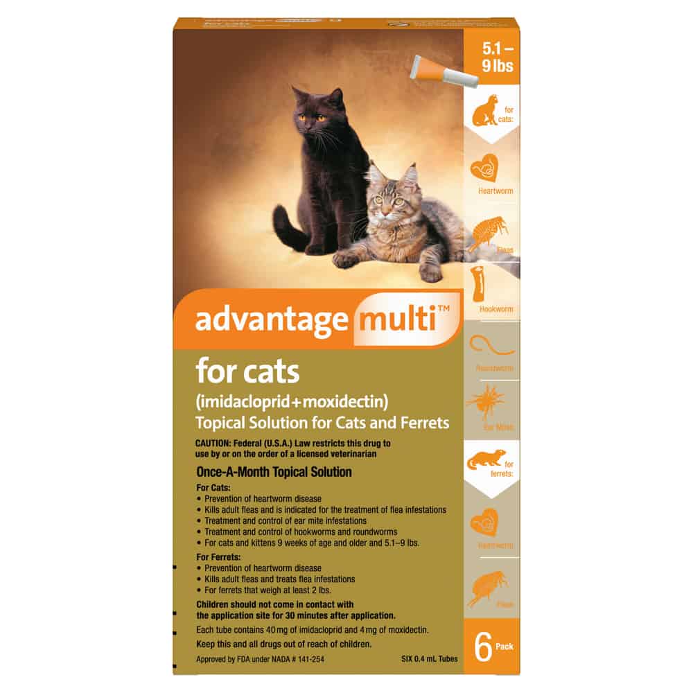 • Advantage Multi for Cats is also the first and only approved product to kill adult fleas, treat flea infestations, and prevent heartworm disease in ferrets.