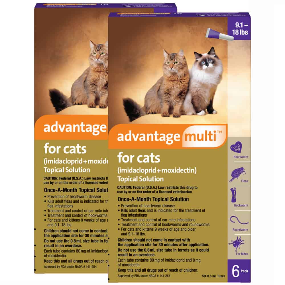 • Advantage Multi for Cats is also used in cats for the treatment and control of flea infestation, roundworms, hookworms, and ear mites.