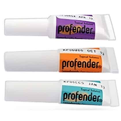 Profender Cat Dewormer is a prescription-required topical solution that is FDA-approved for the treatment and control of hookworm, roundworm, and tapeworm infections in cats 8 weeks of age and older and weighing at least 2.2 lbs. Profender Cat Dewormer is packaged in single unit dosing applicator tubes and is available as 0.35 ml tubes containing emodepside 7.5 mg and praziquantel 30 mg for use on cats 2.2-5.5 lbs, 0.70 ml tubes containing emodepside 15 mg and praziquantel 60.1 mg for use on cats 5.6-11 lbs, and 1.12 ml tubes containing emodepside 24 mg and praziquantel 96.1 mg for use on cats 11.1-17.6 lbs. For cats over 17.6 lbs, the appropriate combination of tubes should be used.