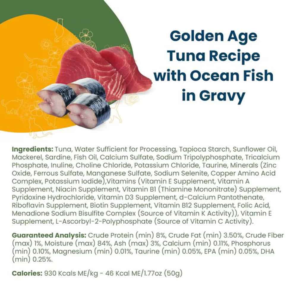 Help your golden-aged cat enjoy every bite! If they have sensitive teeth, gently warm this tuna and ocean fish recipe to room temperature. The softer texture and enhanced aroma will make it easier and more appealing for them to savor their senior-specific meal.