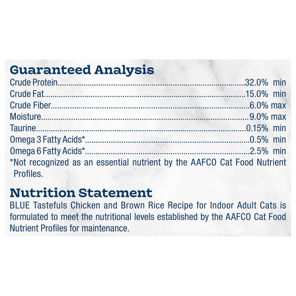Blue Buffalo Tastefuls Indoor Natural Adult Chicken & Brown Rice Dry Cat Food Ingredients: