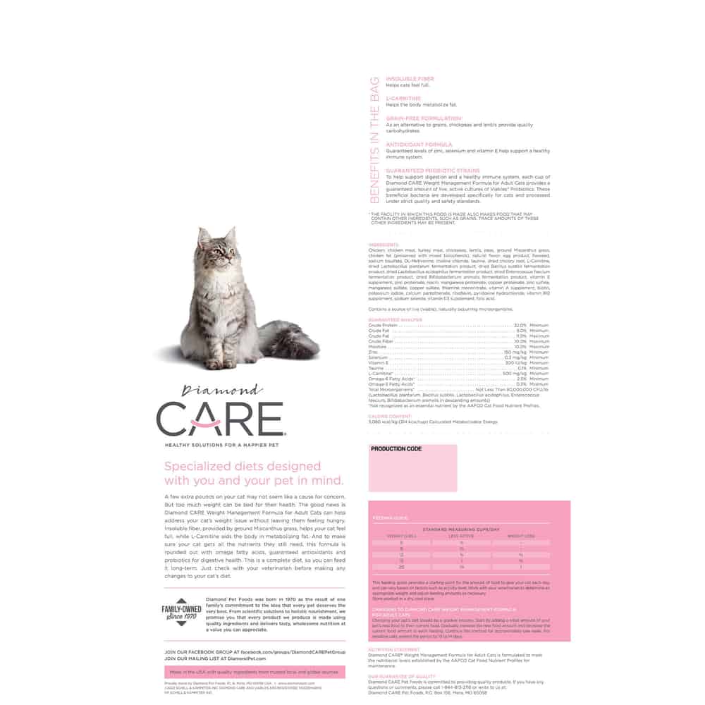 Diamond Care Adult Weight Management Formula Dry Cat Food Directions: