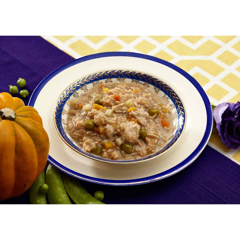 | Chicken Broth, Chicken, Potatoes, Sunflower Oil, Peas, Carrots, Pumpkin, Natural Flavors, Tricalcium Phosphate, Guar Gum, Potassium Chloride, Salt, Taurine, Choline Chloride, Taurine, Magnesium Sulfate, Vitamin E Supplement, Zinc Oxide, Iron Proteinate, Thiamine Mononitrate, Niacin, Sodium Selenite, Vitamin A Supplement, Manganese Sulfate, Copper Proteinate, Pyridoxine Hydrochloride, Calcium Pantothenate, Riboflavin Supplement, Folic Acid, Vitamin B12 Supplement, Potassium Iodide, Vitamin D3 Supplement, Biotin. |