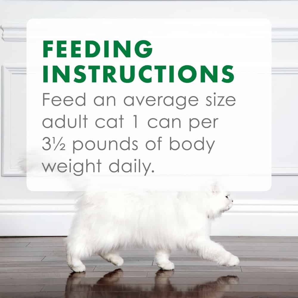 • Feed an average size adult cat 1 can per 3-1/2 lbs of body weight daily