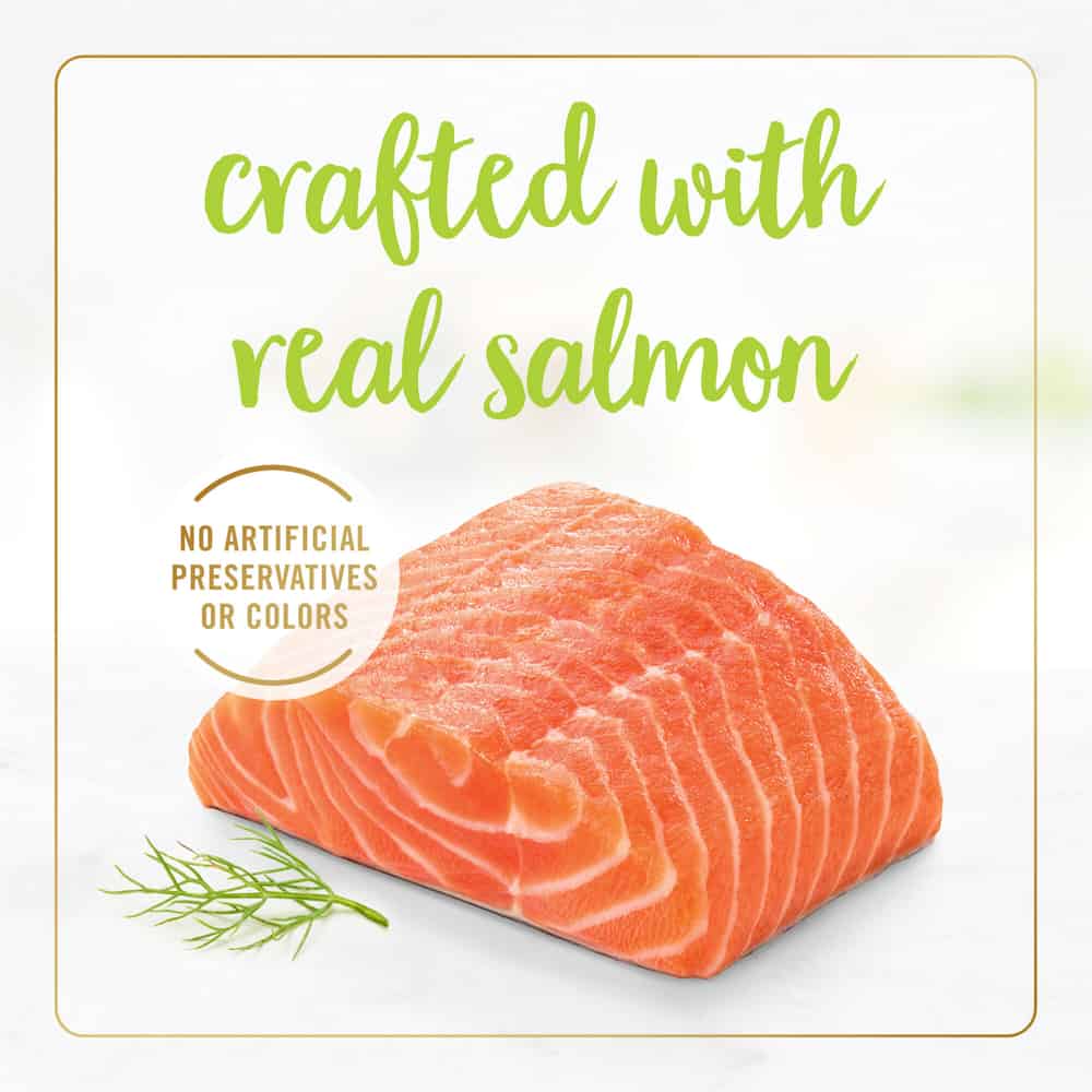 - Crafted with real salmon in a light, savory gravy for cats