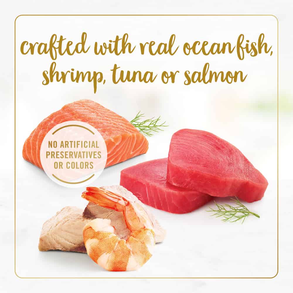 - Crafted with real seafood in a light, savory gravy for cats
