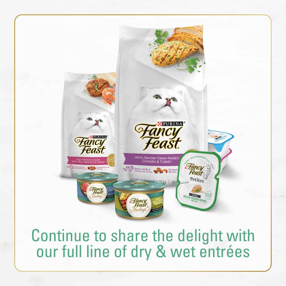 - Fancy Feast dry food produced using sustainable ingredients in Purina-owned facilities