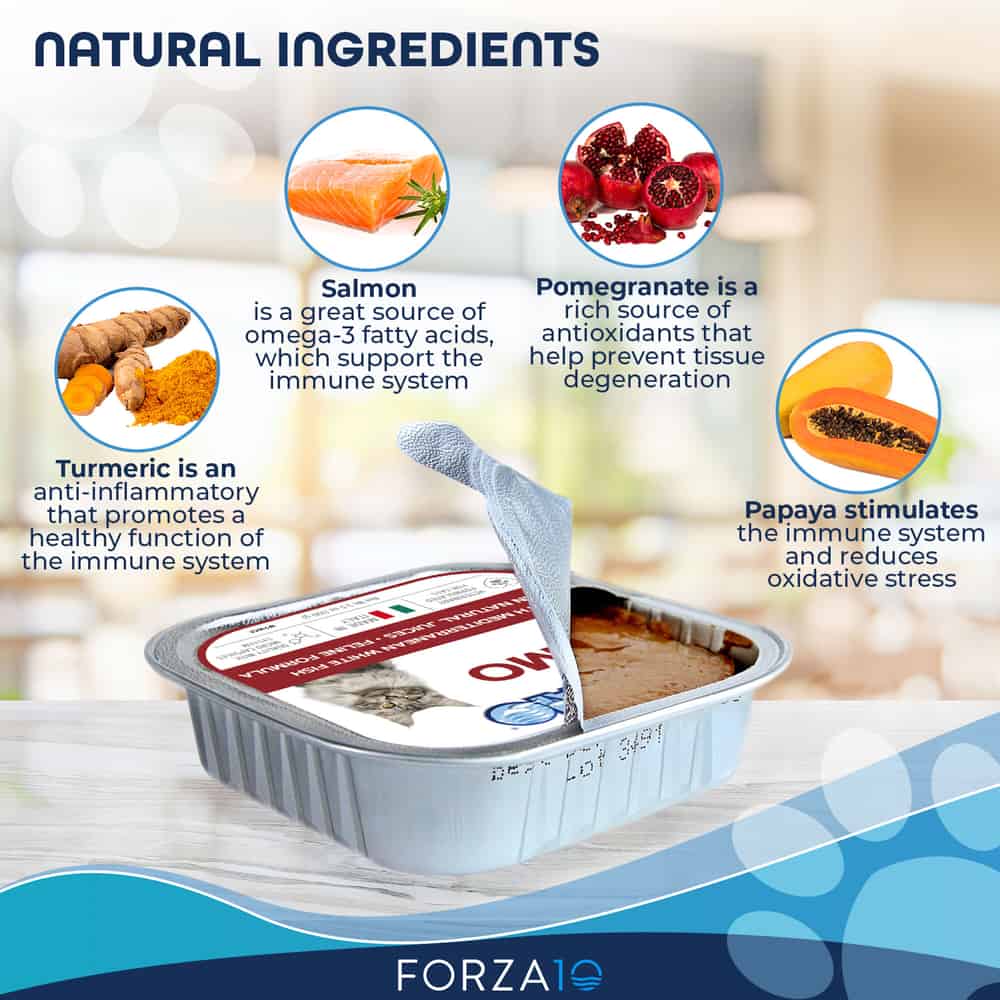 Forza10 ActiWet Dermo is a specially designed cat food for felines suffering from sensitive skin issues such as itchiness, redness, hot spots, scratching, dandruff, dry and dull fur, and constant fur loss. This cat food is free from harmful ingredients such as GMOs, by-products, wheat, soy, artificial colors, or flavors. Forza10 recipes are supported by numerous scientific studies conducted in association with veterinarians and European universities and published in prestigious international scientific journals. Feel like a great cat parent with this super delicious and nutritious recipe!