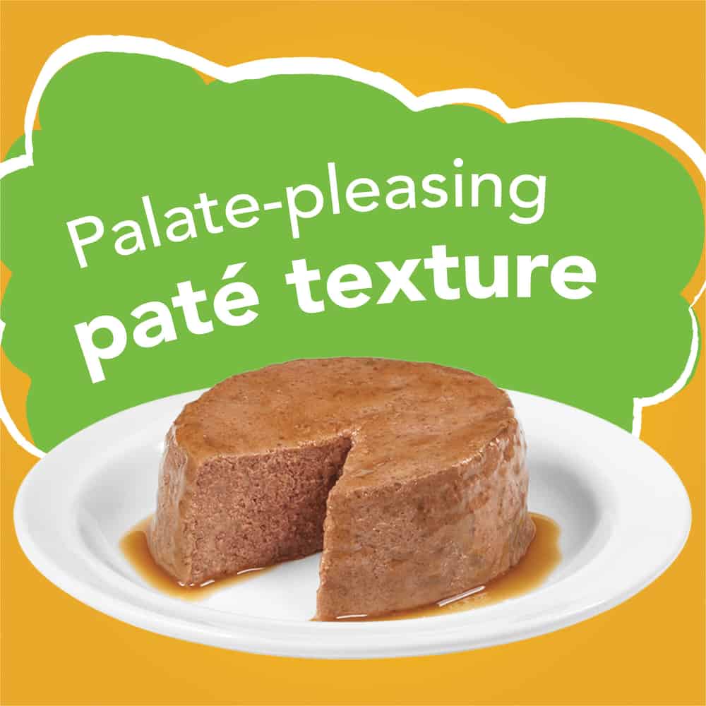 - Pate cat food containing essential vitamins and minerals and 100 percent complete and balanced nutrition for adult cats