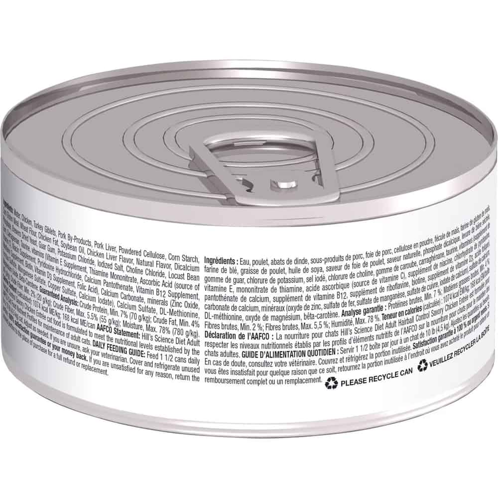 What is Hill's Science Diet Adult Hairball Control Savory Chicken Entrée Wet Cat Food?