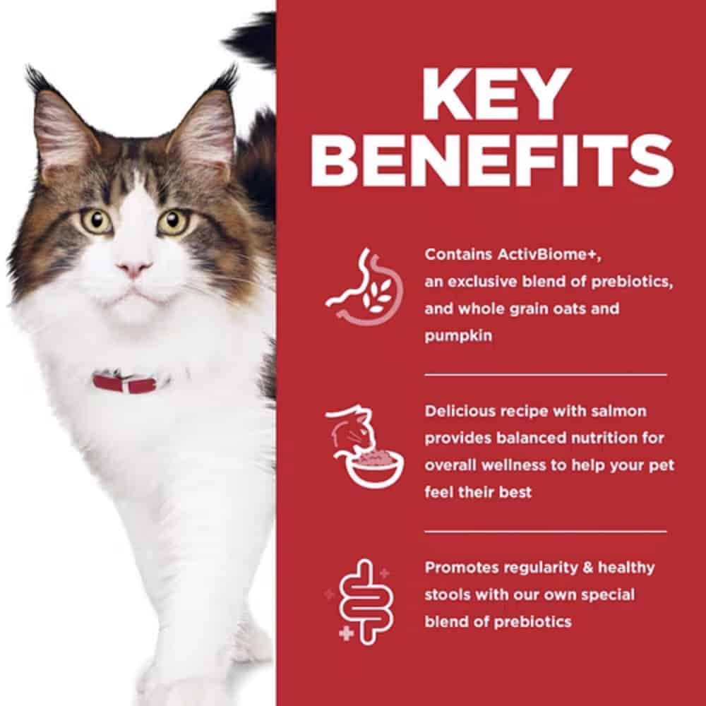 How does Hill's Science Diet Adult Perfect Digestion Salmon Recipe Dry Cat Food work?