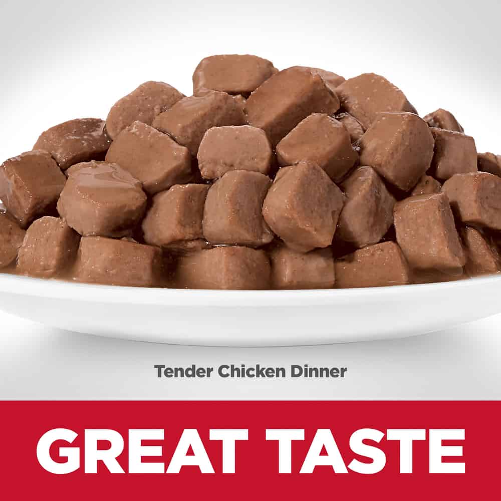 Hill's Science Diet Adult Tender Chicken Dinner Wet Cat Food Pouches now comes in a pouch that’s easy to open and easy to feed. With delicious chunks in a decadent gravy, even the most picky eaters will love this soft and tender cat food. It’s the perfect option for adult cats ages 1-6 who are ready to switch from kitten food
