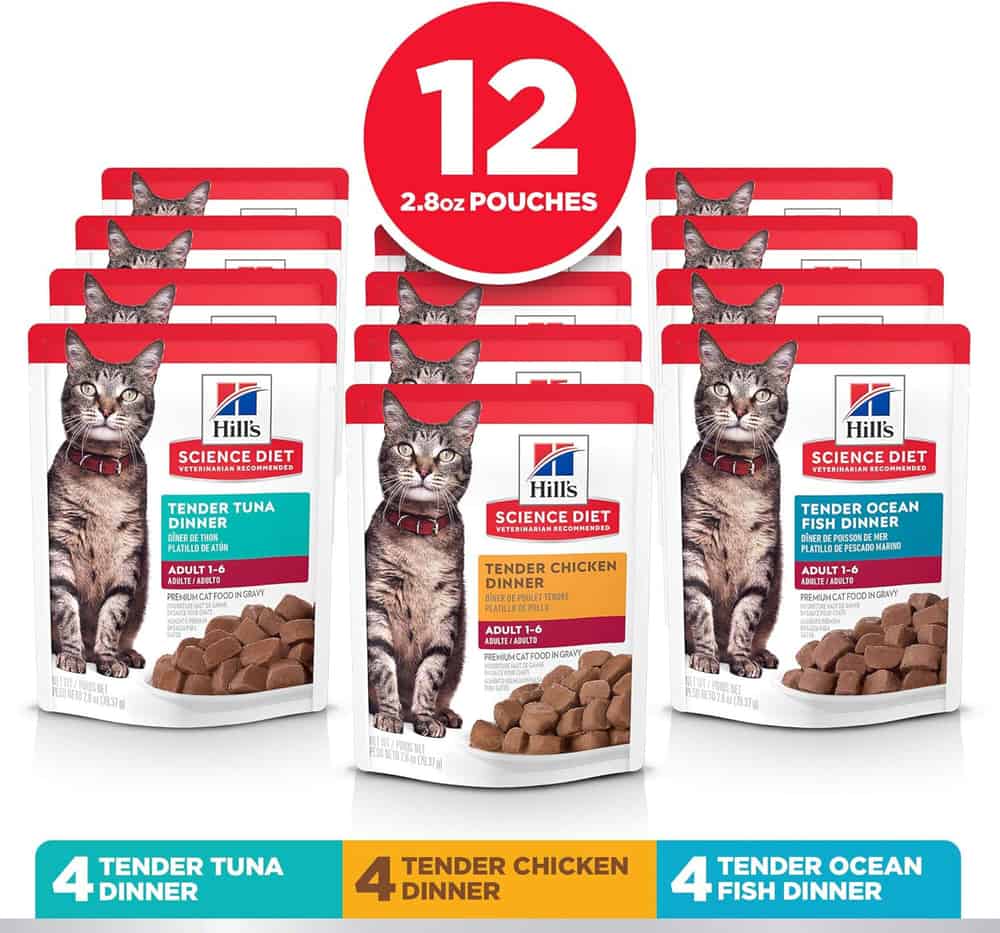 Hill's Science Diet Adult Tender Dinner Variety Pack Tuna, Chicken, & Ocean Fish Wet Cat Food Directions: