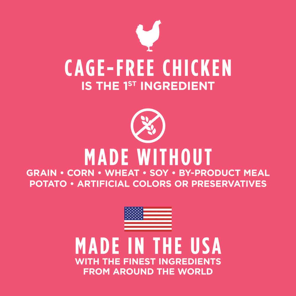 - Cage-free chicken is the first ingredient - packed with animal protein for strong, lean muscles