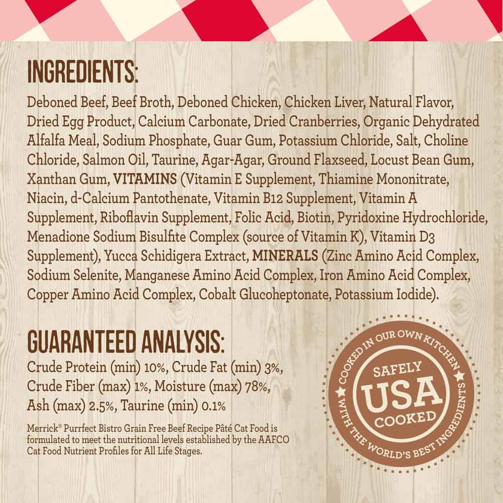 Merrick Purrfect Bistro Beef Pate Grain Free Canned Cat Food Ingredients: