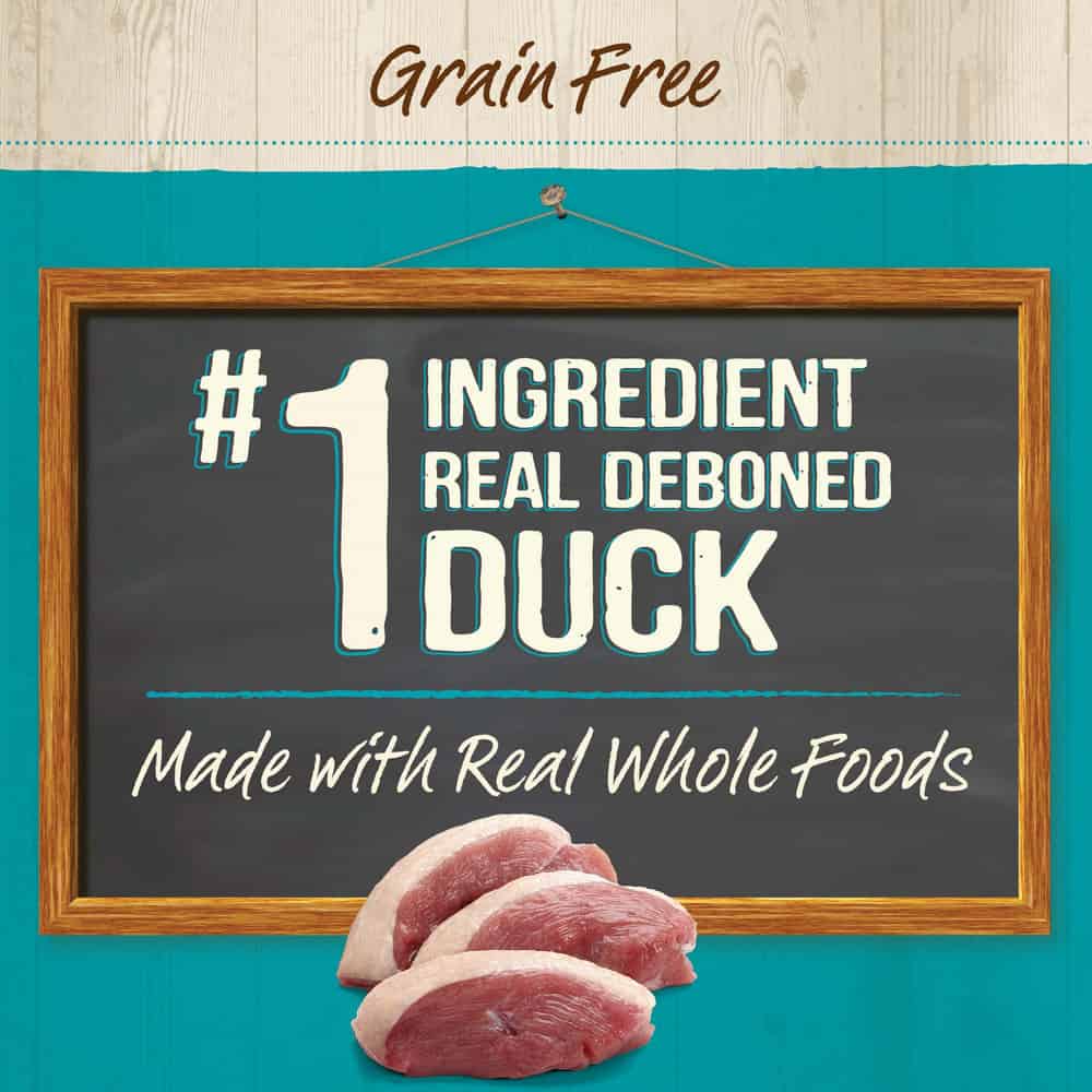 - Real deboned duck is always the first ingredient in this high protein cat food Grain free cat food has no artificial colors, flavors, preservatives or soy