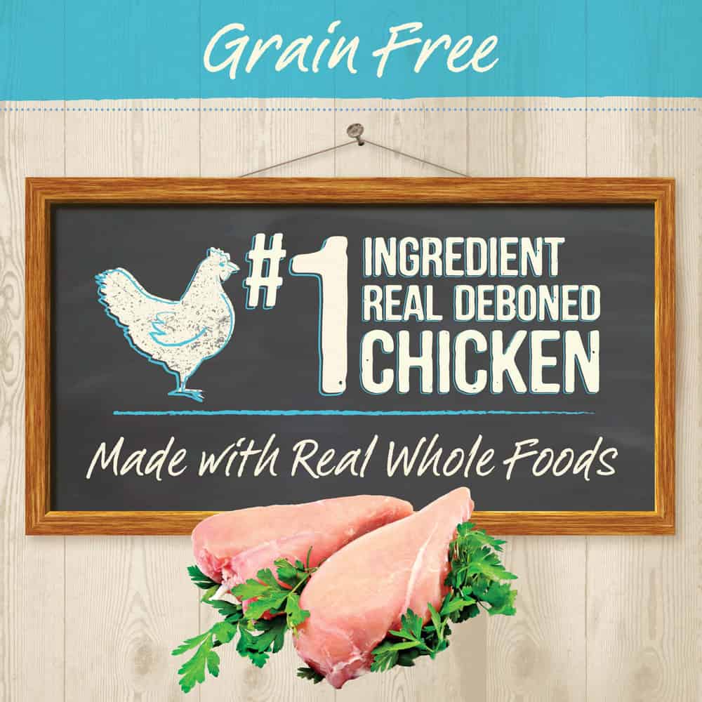- Real deboned chicken is the first ingredient in this grain free cat dry food recipe