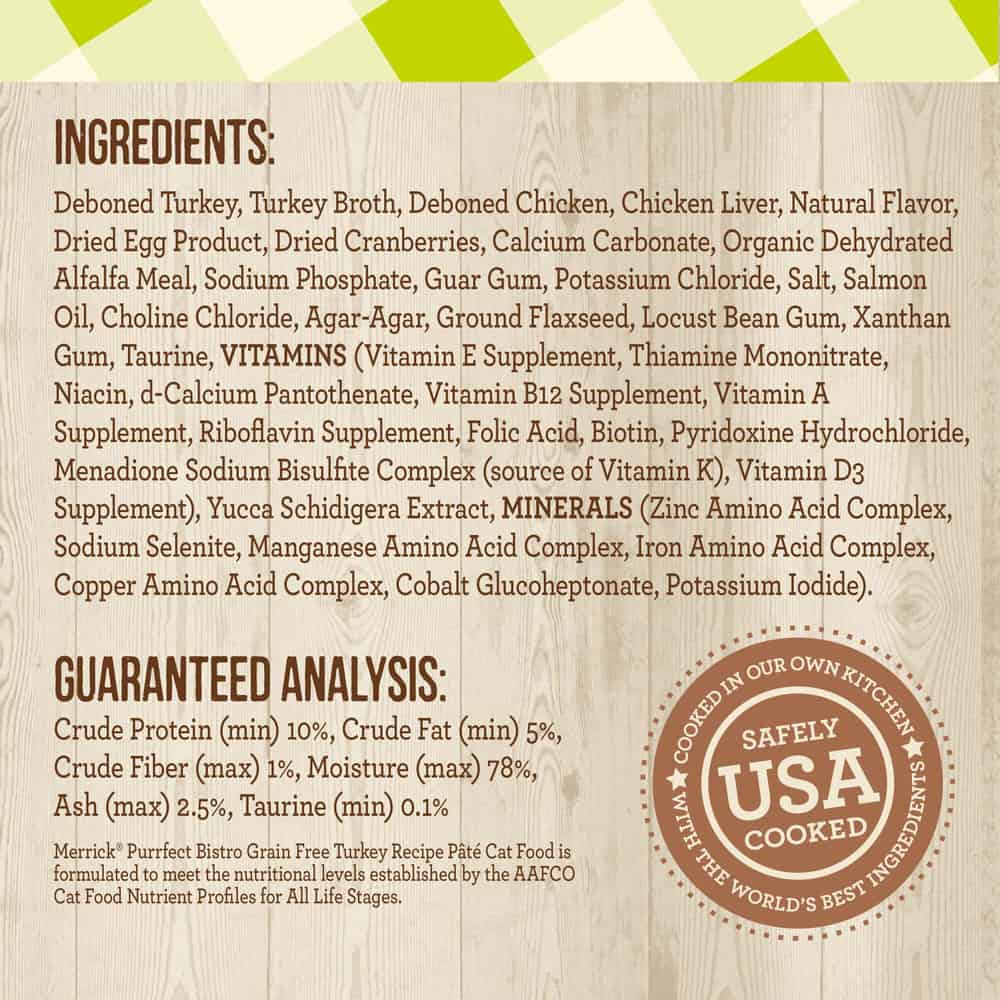 Merrick Purrfect Bistro Turkey Pate Grain Free Canned Cat Food Ingredients: