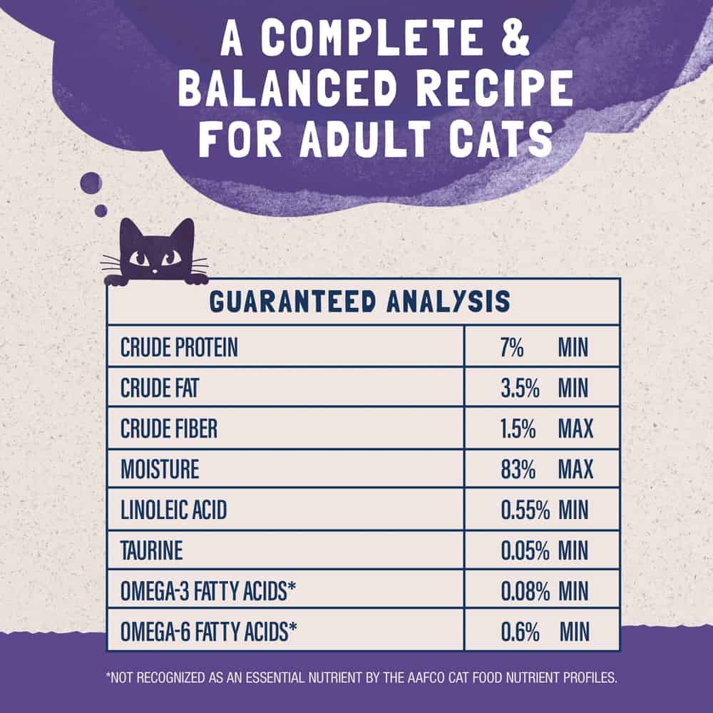 Complete & Balanced Food For Adult Cats. Great for Skin & Coat. Grain Free. No Corn, Soy, Wheat, Artificial Flavors or Colors. High Quality Ingredients