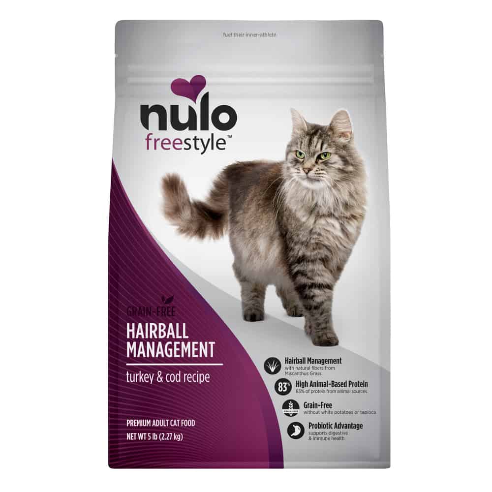 How does Nulo FreeStyle Adult Grain-Free Hairball Management Turkey & Cod Dry Cat Food work?