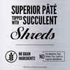 - This diet is a high-quality pâté of lamb, beef, poultry and fish topped with succulent shreds of beef
