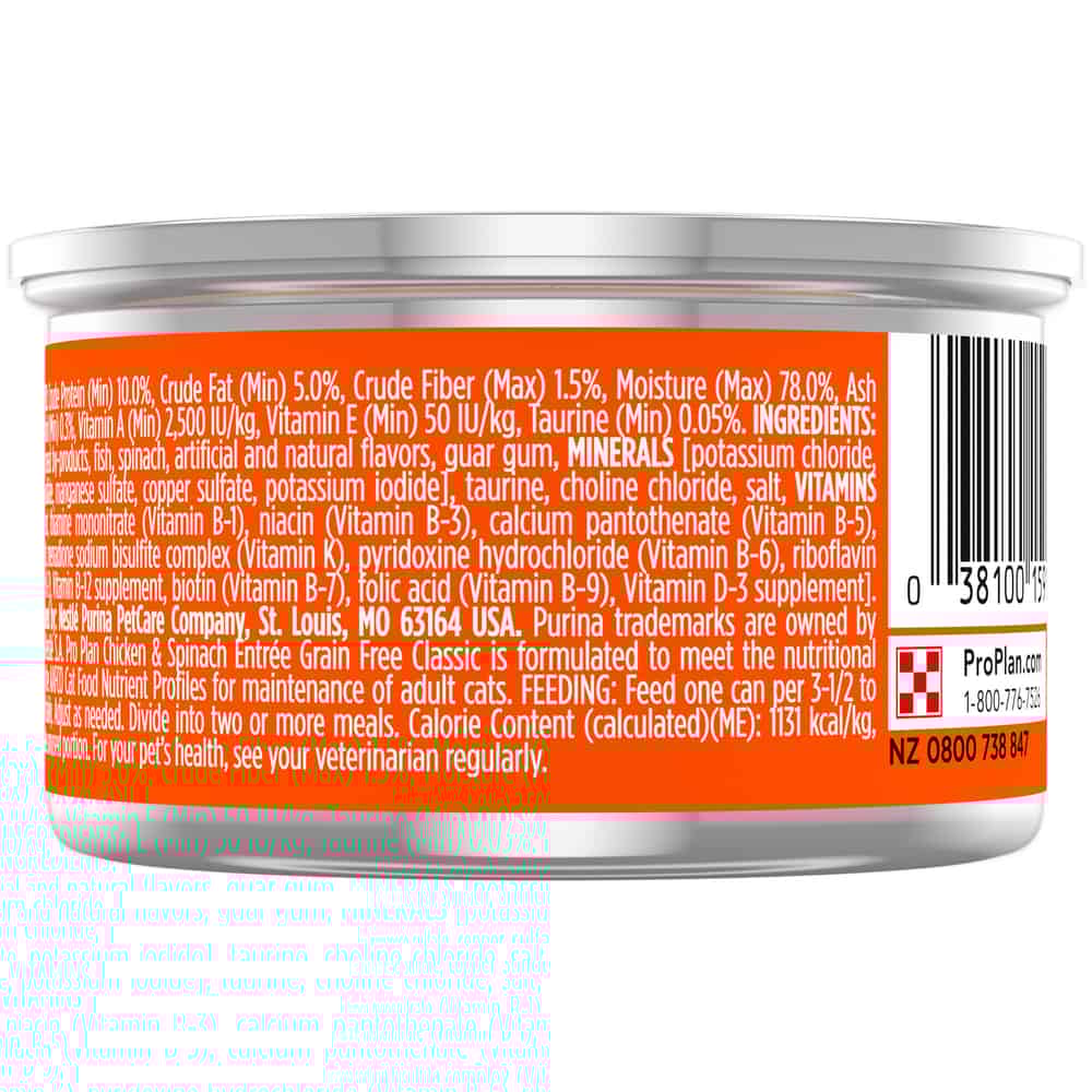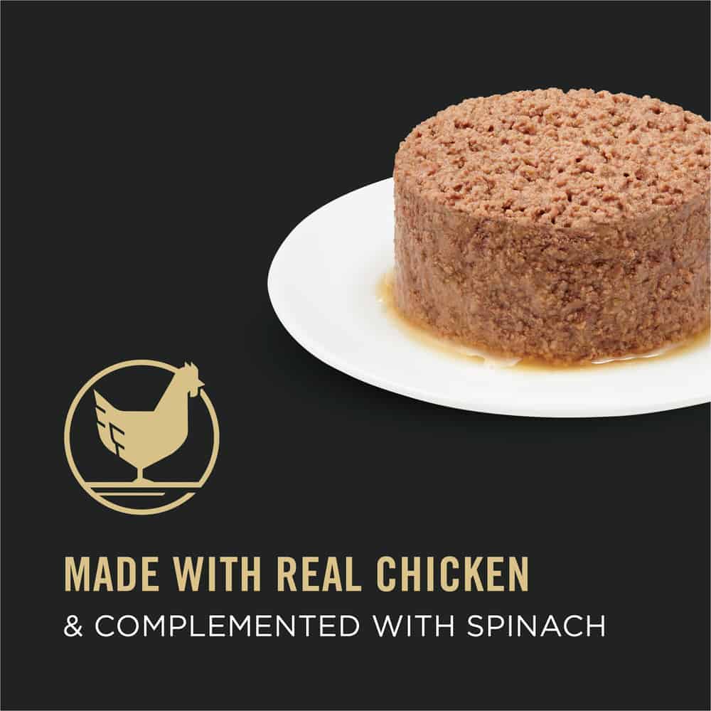 Purina Pro Plan Adult Complete Essentials Chicken & Spinach Entree Grain Free Classic Wet Cat Food Ingredients: