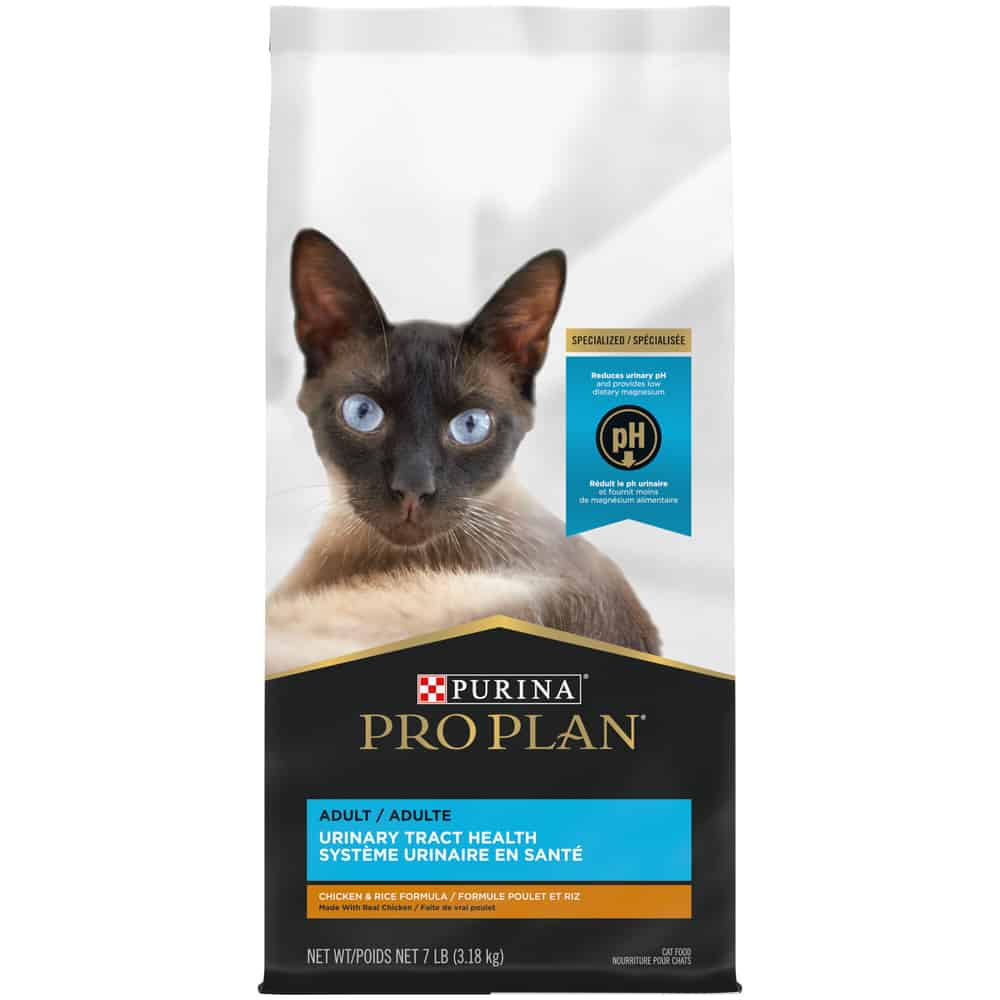 - Pro Plan Urinary Tract Health Chicken & Rice Formula is formulated to be fed exclusively and should not be mixed with any other type of cat food.It is important that you feed Pro Plan to your adult cat “free choice” throughout the day, rather than as just a single feeding only at mealtime. Food intake required to maintain ideal body condition will vary, depending on age, activity and environment. Watch your cat’s weight and adjust food amounts accordingly.