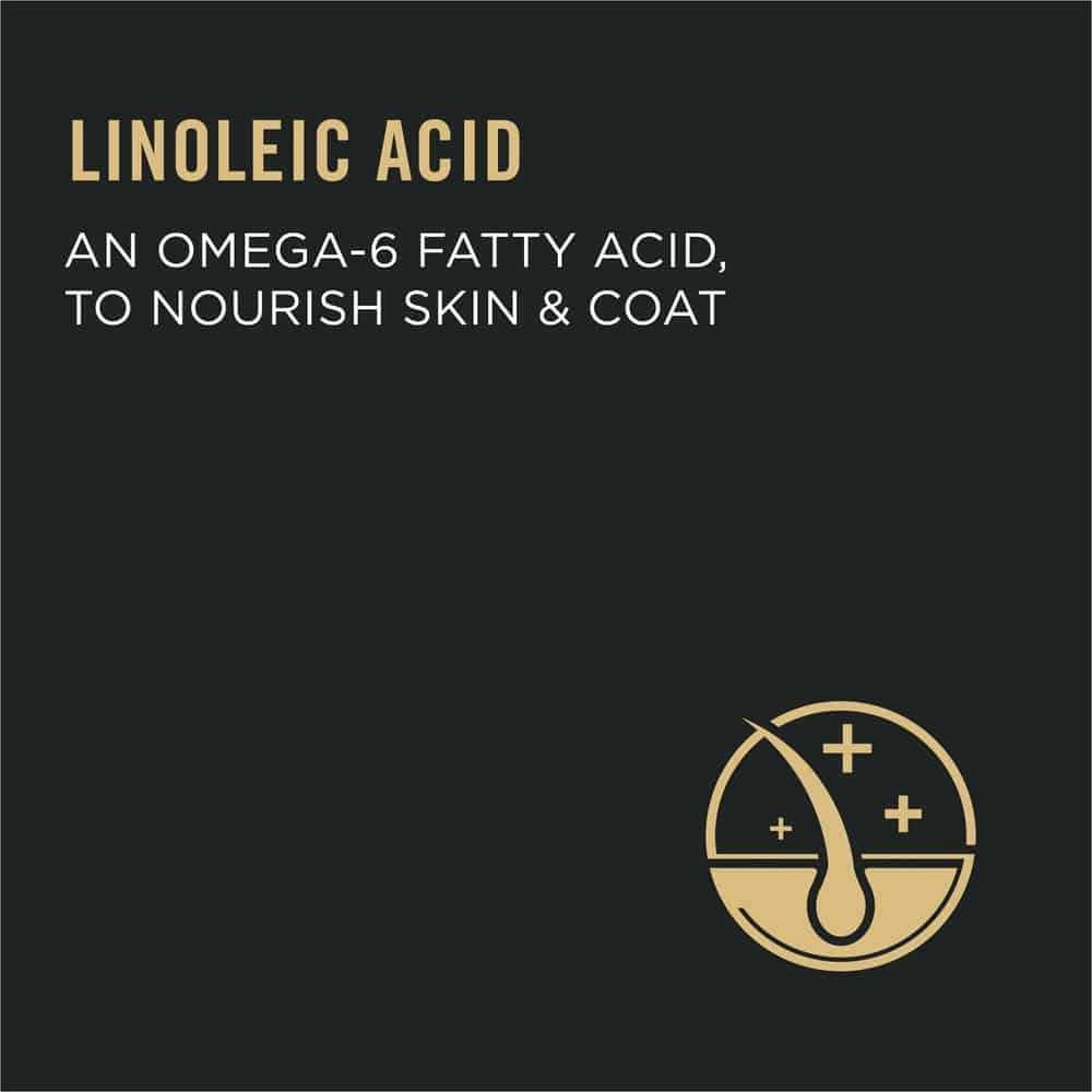 - Linoleic acid, an omega-6 fatty acid, to nourish skin and coat.