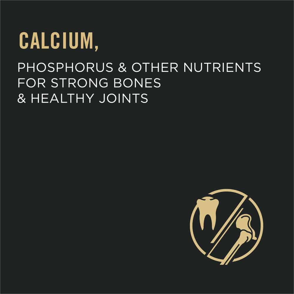 - Calcium, phosphorous and other nutrients for strong bones and healthy joints.