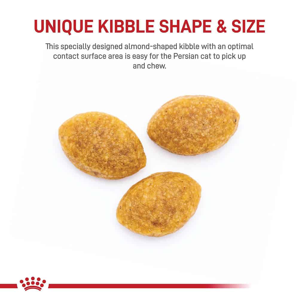 - SPECIALIZED KIBBLE: This specially designed almond-shaped kibble with an optimal contact surface area is easy for the Persian cat to pick up and chew.