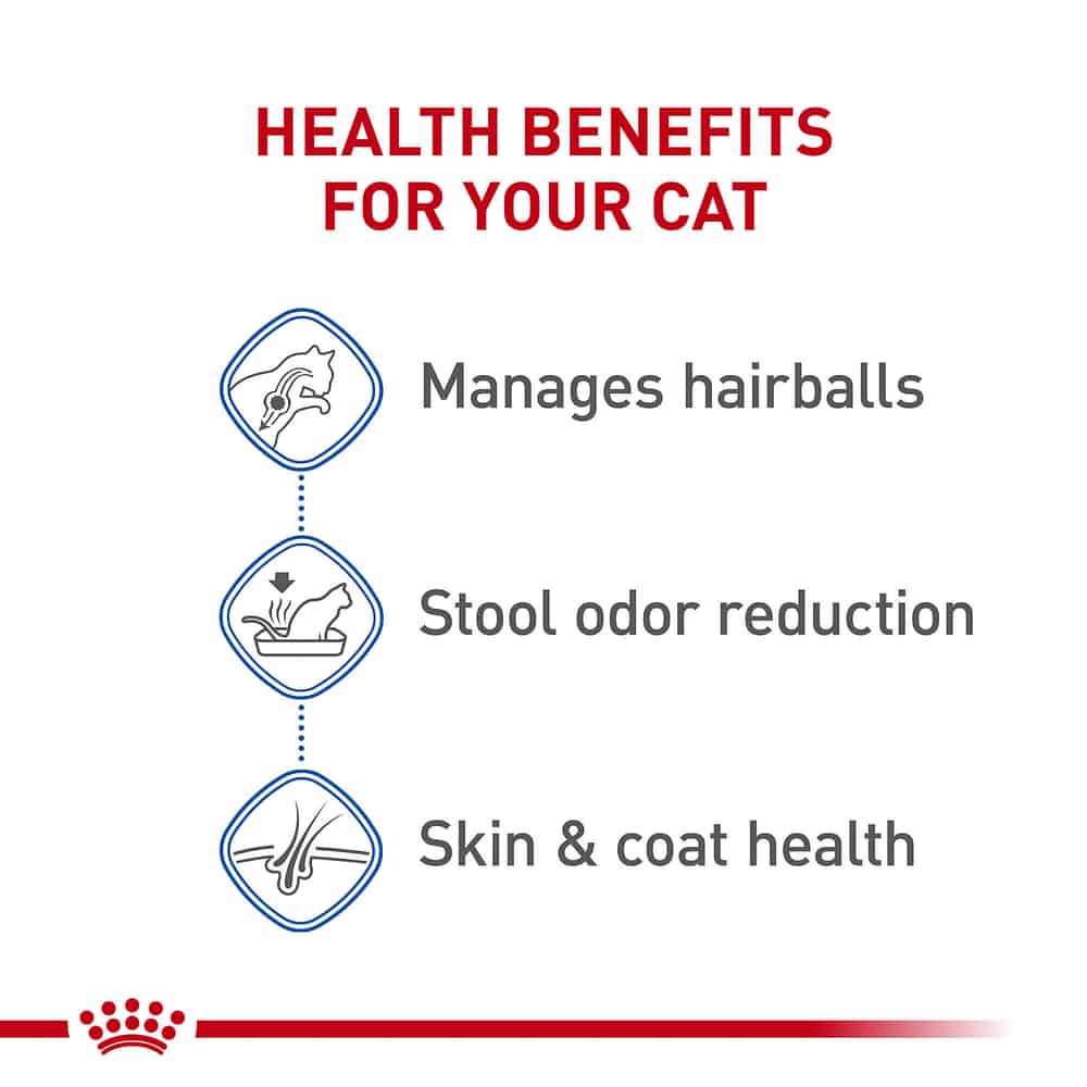 - MANAGES HAIRBALLS: Long-haired cats living indoors are particularly prone to hairballs. Indoor Long Hair Adult Dry Cat Food is formulated with a combination of different types of fibers that encourages intestinal transit and helps to facilitate the elimination of the hair your cat swallows every day.