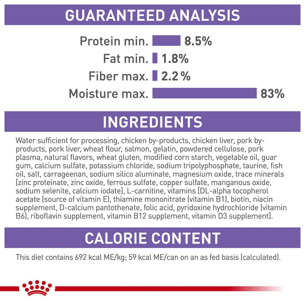 Royal Canin Feline Health Nutrition Spayed / Neutered Thin Slices in Gravy Adult Wet Cat Food Ingredients: