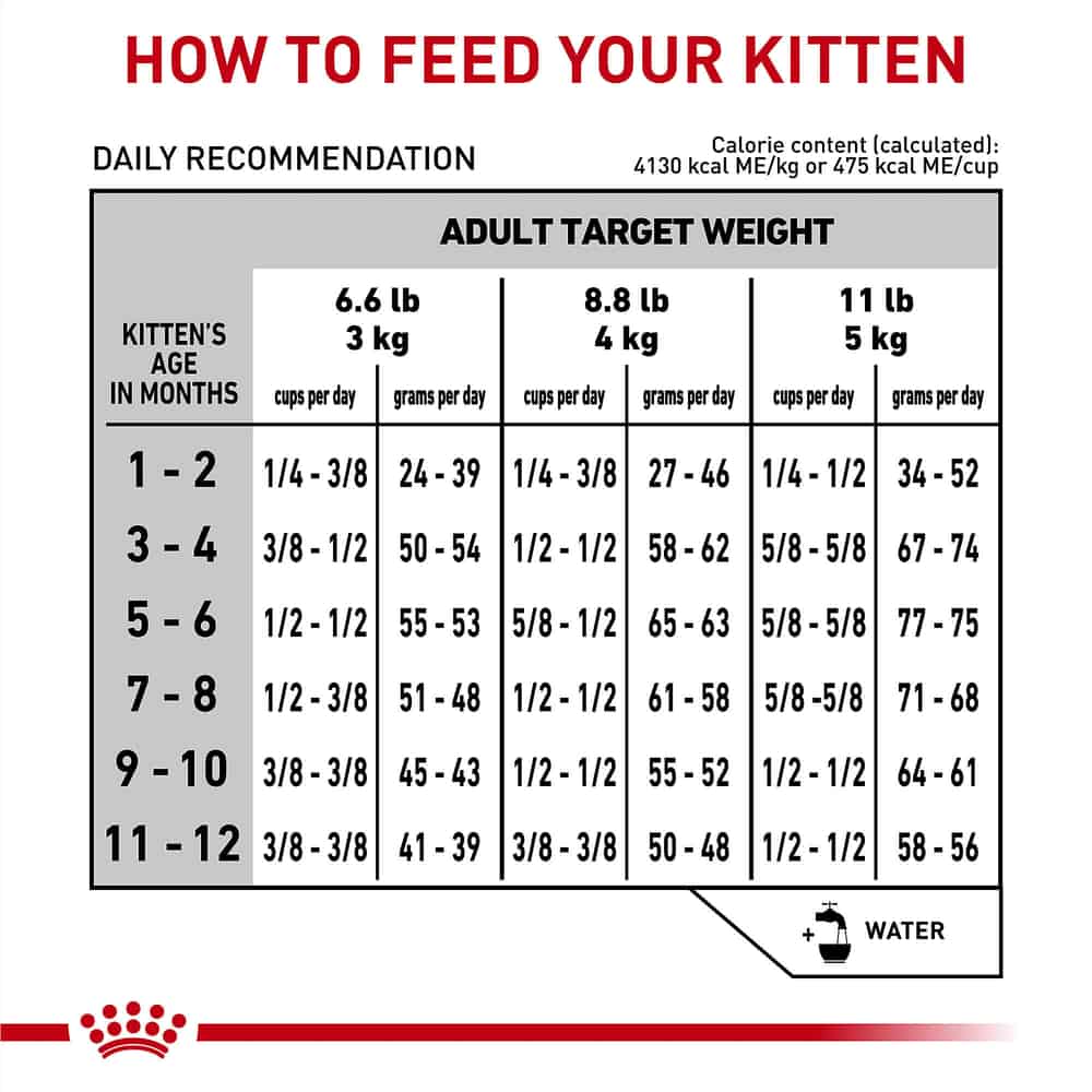 - Optimal feeding amounts may vary according to your kitten's activity level and environment.