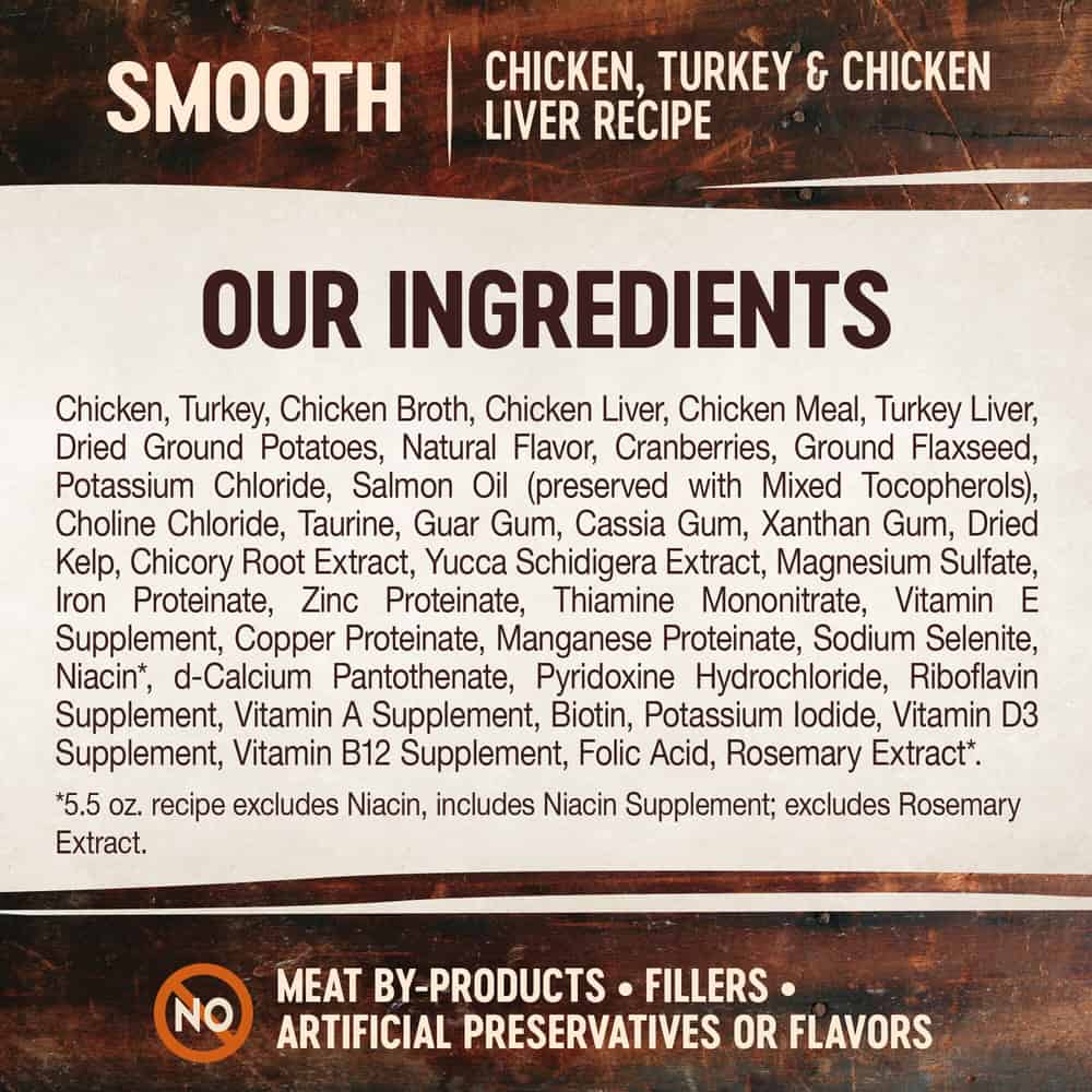 - CHICKEN, TURKEY, & CHICKEN LIVER PATE: This natural, grain free recipe features real chicken, turkey, and chicken liver for a complete, balanced nutrition. Pate is completely smooth for an irresistible taste your cat will love