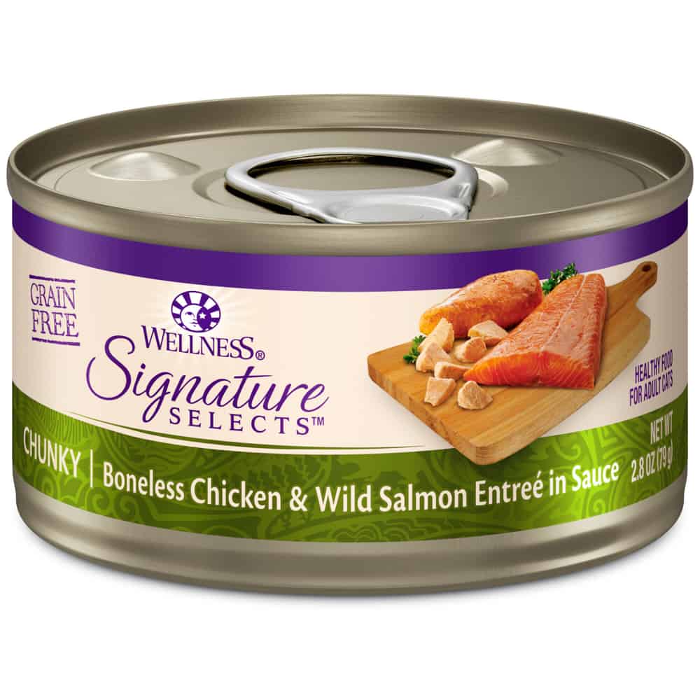 What is Wellness CORE Signature Selects Natural Grain Free Chunky Chicken & Salmon Canned Wet Cat Food?
