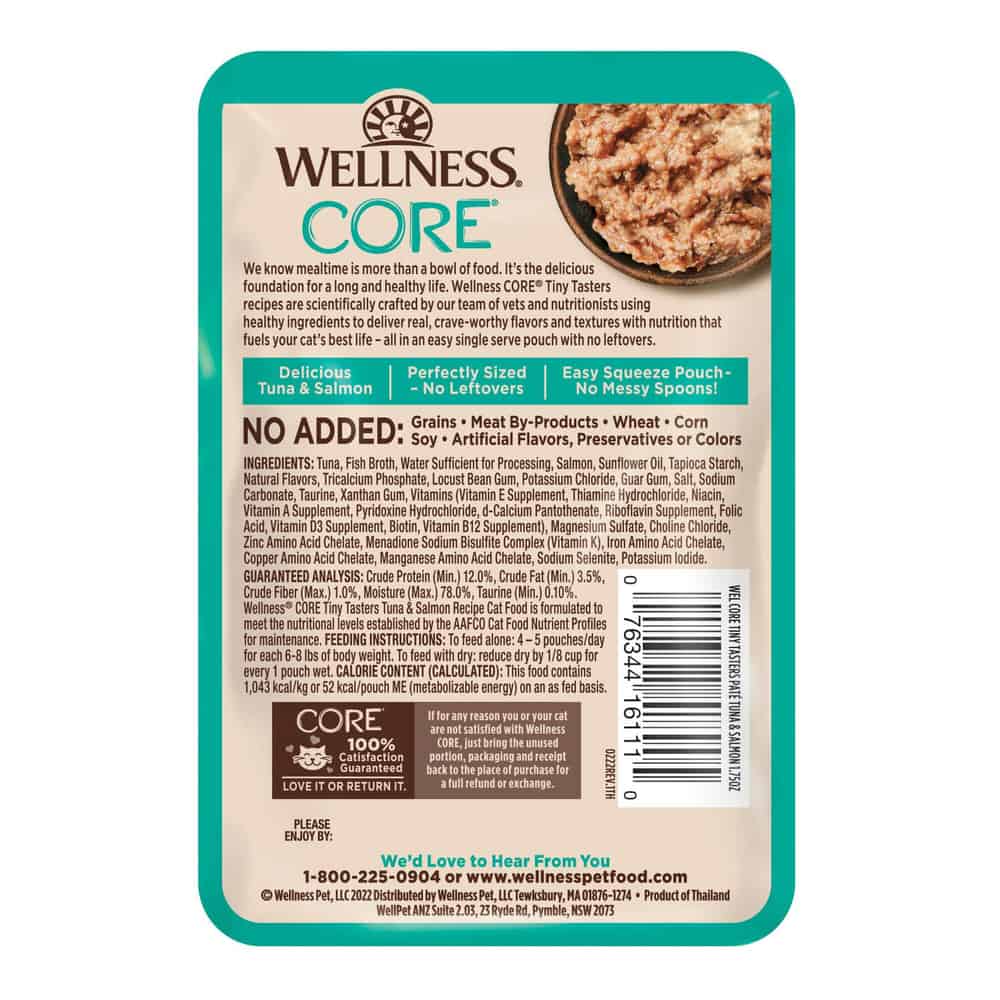 Wellness CORE Tiny Tasters Pate Tuna & Salmon Recipe Wet Cat Food Directions: