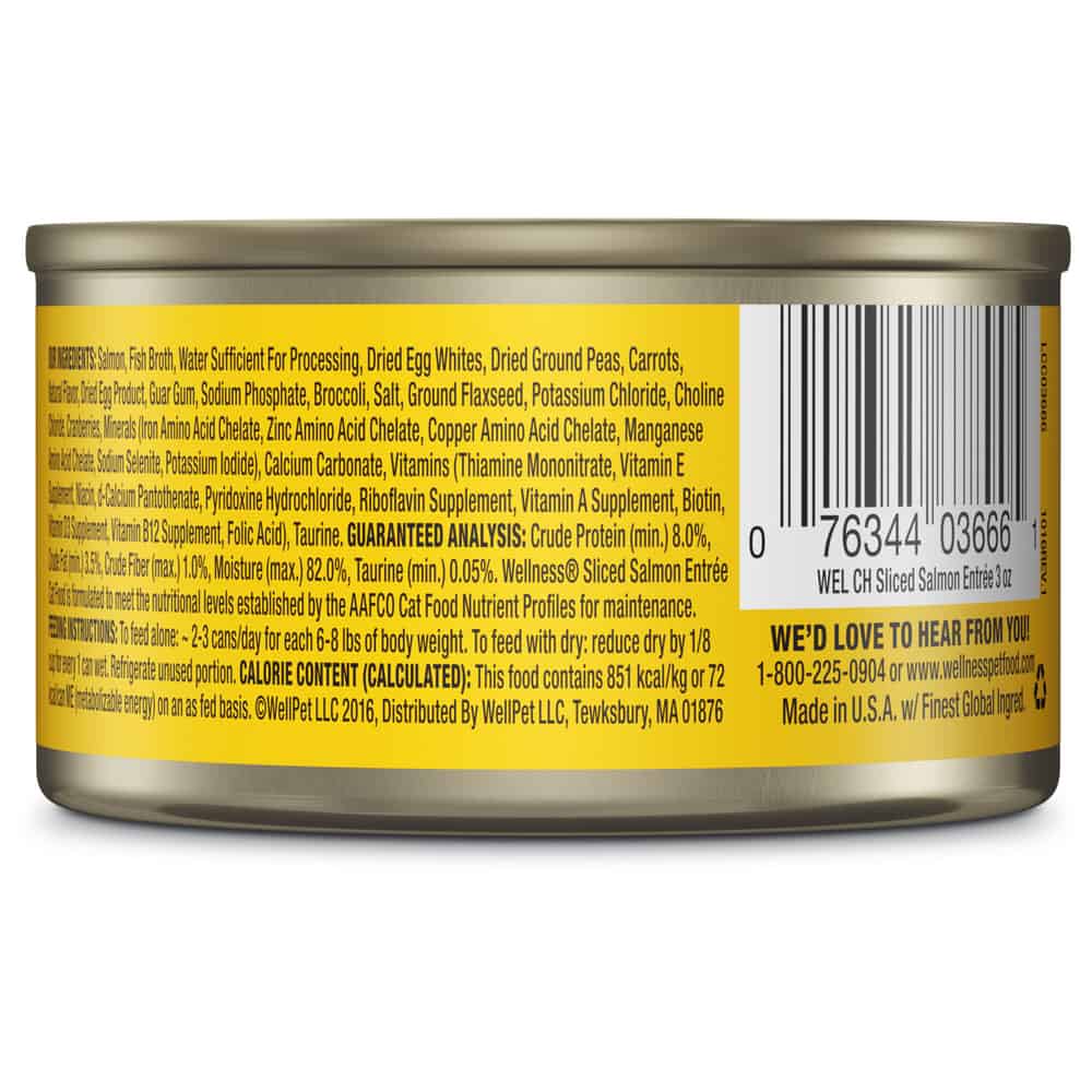| Wellness® Sliced Salmon Entrée Cat Food is formulated to meet the nutritional levels established by the AAFCO Cat Food Nutrient Profiles for maintenance. | |