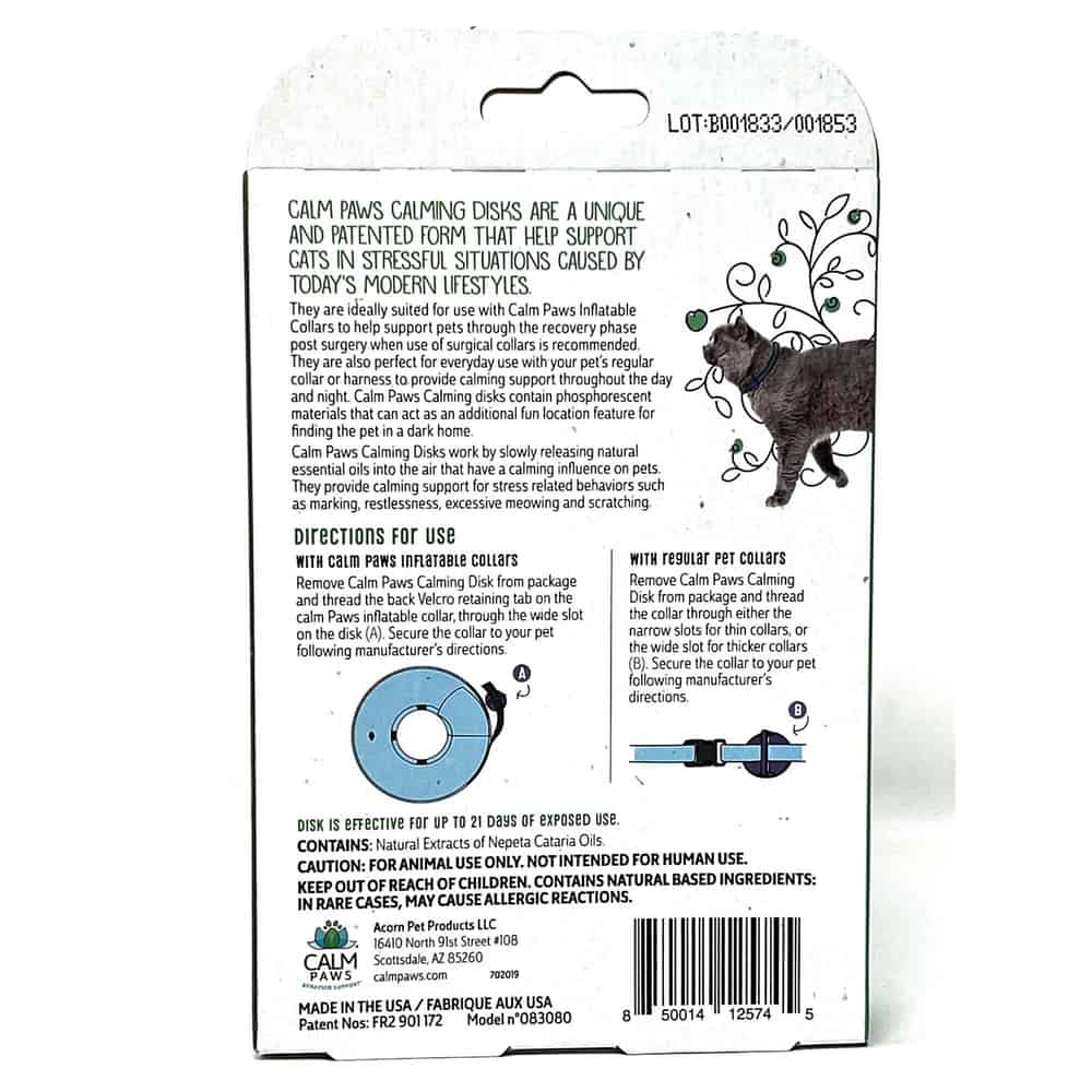 Calm Paws Calming Disk Medallion for Cats Details: