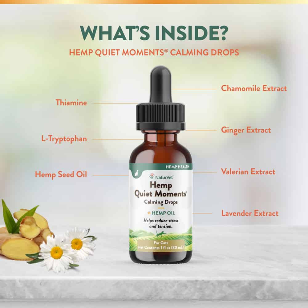 NaturVet Hemp Quiet Moments Hemp Oil Calming Drops Supplement for Cat Ingredients: