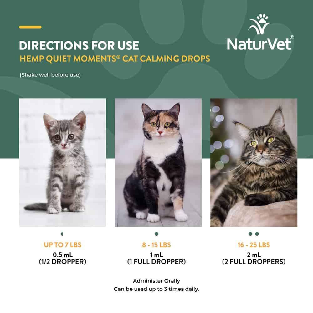 NaturVet Hemp Quiet Moments Hemp Oil Calming Drops Supplement for Cat Directions:
