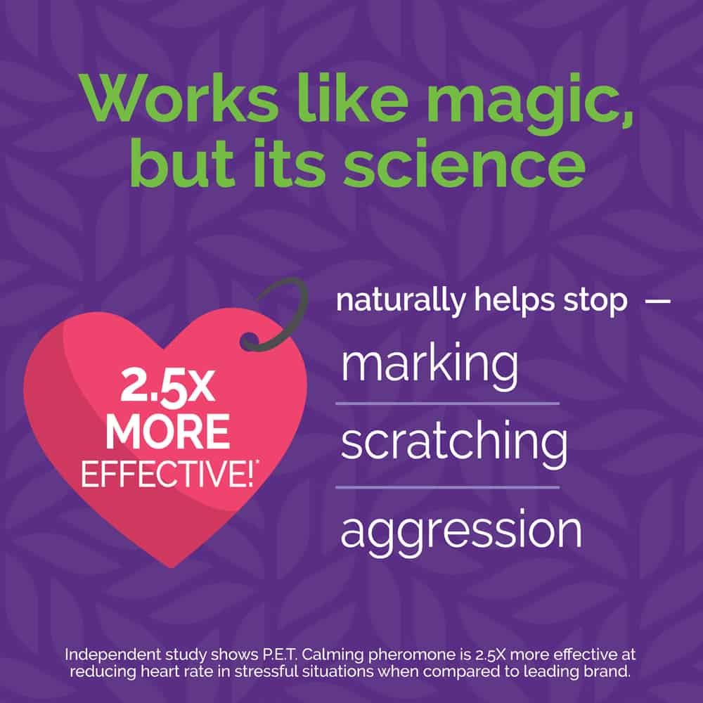 - Harmony Pet Calming Diffuser uses the P.E.T. Pheromone, proven to work 2.5 times better than other leading calming brands.