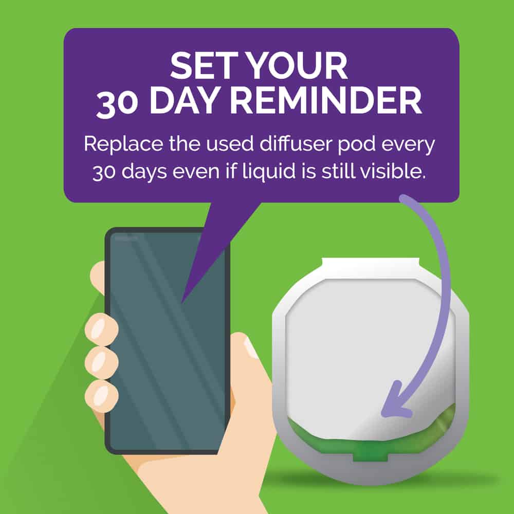 - 3. Replace the used diffuser pod every 30 days, even if liquid is still visible.