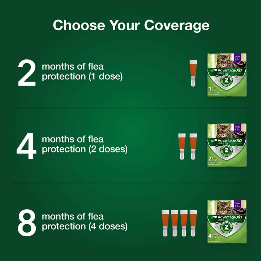 Advantage XD kills fleas through contact, so they don't have to bite your cat to die. Advantage XD continues to kill fleas for 2 months, which outlasts the typical six week flea life cycle and prevents reinfestations.