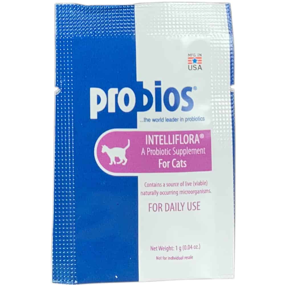 Probios Intelliflora For Cats is a probiotic supplement that contains a source of live (viable) naturally occurring microorganisms. It is meant to be used as a daily supplement to help maintain appetite and digestion. It is also used to maintain normal stool consistency in cats. Probios Intelliflora can also be used with cats that are prone to dietary indiscretion (eating non-food), or during diet changes or boarding/traveling.