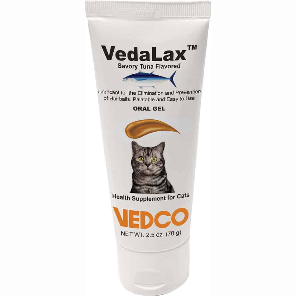 The mineral oil in VedaLax acts as a lubricant, coating the ingested hair to help it slide through the intestines more easily. The other ingredients provide a mild laxative effect, encouraging bowel movements and the expulsion of hairballs