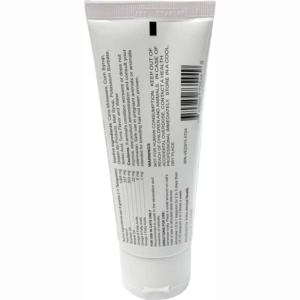 VedaLax Oral Gel Maple is a palatable oral gel for cats formulated to aid in the elimination and prevention of hairballs. It contains lubricants and mild laxatives that help move ingested hair through the digestive tract.