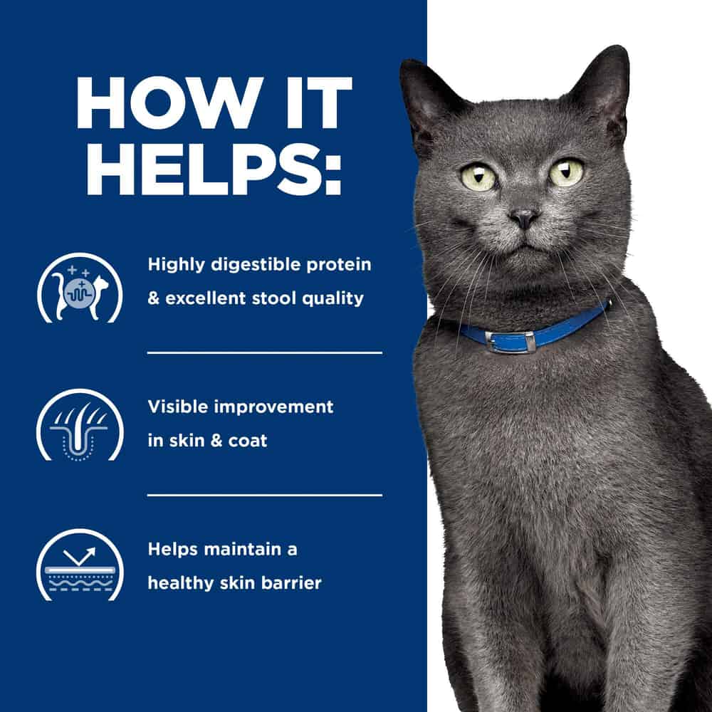 Hill's nutritionists & veterinarians developed Prescription Diet d/d clinical nutrition specially formulated to support a cat's food sensitivities.There can be a variety of reasons for a cat's itchy skin condition, including sensitivities to food. The good news is, most cats with these skin conditions can benefit from simply eating the right food, like Hill's prescription Diet! Hill's Prescription Diet d/d Wet Cat Food provides all the nutrition your cat needs.